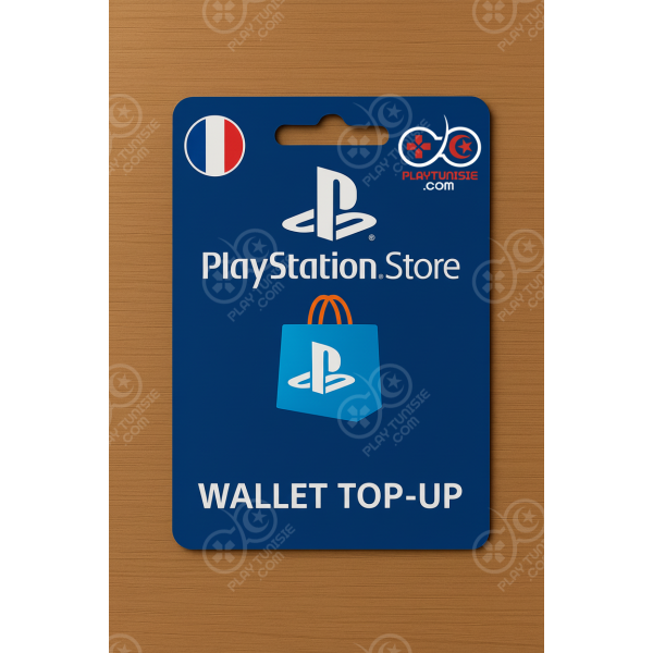 Découvrez la Carte PSN [FRANCE] disponible sur PlayTunisie.com, le 1er site en Tunisie de vente en ligne de cartes gaming et cartes digitales. Avec une carte PlayStation Store FR, rechargez instantanément votre portefeuille et profitez d’un large choix de contenus sur votre console PlayStation.
