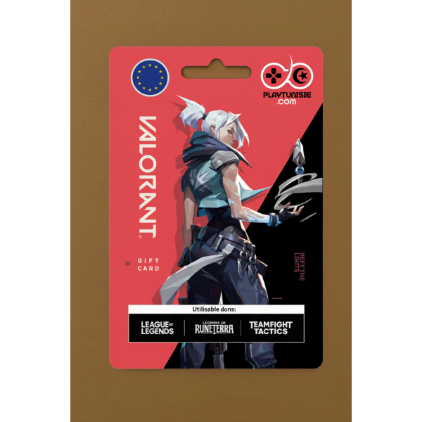 Grace à la carte de recharge Valorant [Europe], alimentez votre compte en euro et achetez votre pack Valorant Points. Disponible sur PlayTunisie.com, premier site de vente de cartes digitales en Tunisie. Cette carte vous permet d’acheter rapidement du contenu cosmétique sur Valorant, sans avoir besoin d’une carte bancaire internationale.