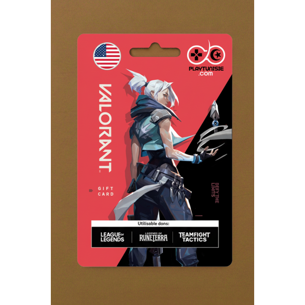 Grace à la carte de recharge Valorant [USA], alimentez votre compte en dollar et achetez votre pack Valorant Points. Disponible sur PlayTunisie.com, premier site de vente de cartes digitales en Tunisie. Cette carte vous permet d’acheter rapidement du contenu cosmétique sur Valorant, sans avoir besoin d’une carte bancaire internationale.