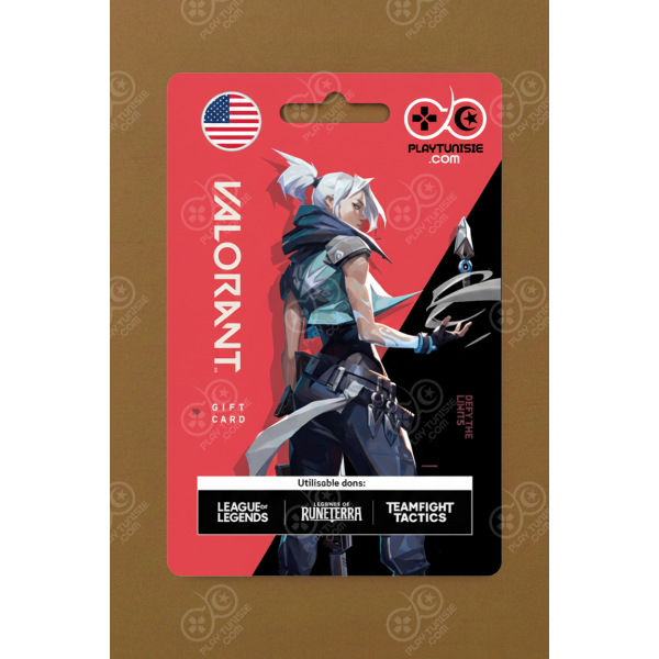 Grace à la carte de recharge Valorant [USA], alimentez votre compte en dollar et achetez votre pack Valorant Points. Disponible sur PlayTunisie.com, premier site de vente de cartes digitales en Tunisie. Cette carte vous permet d’acheter rapidement du contenu cosmétique sur Valorant, sans avoir besoin d’une carte bancaire internationale.